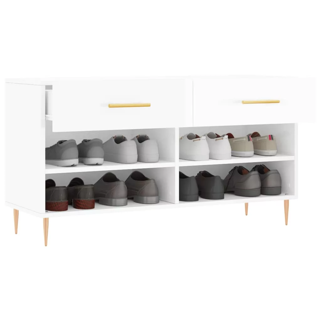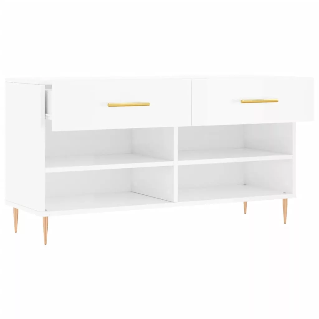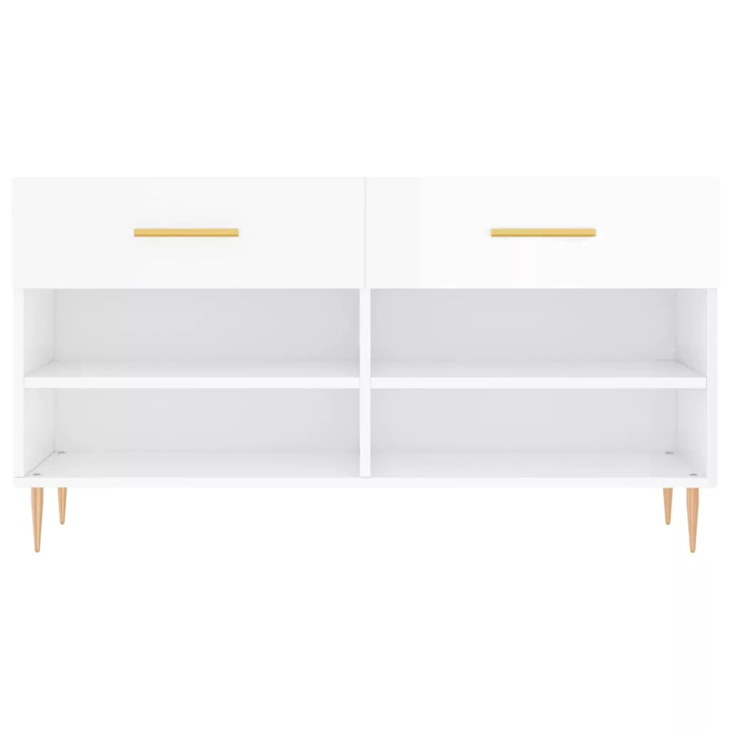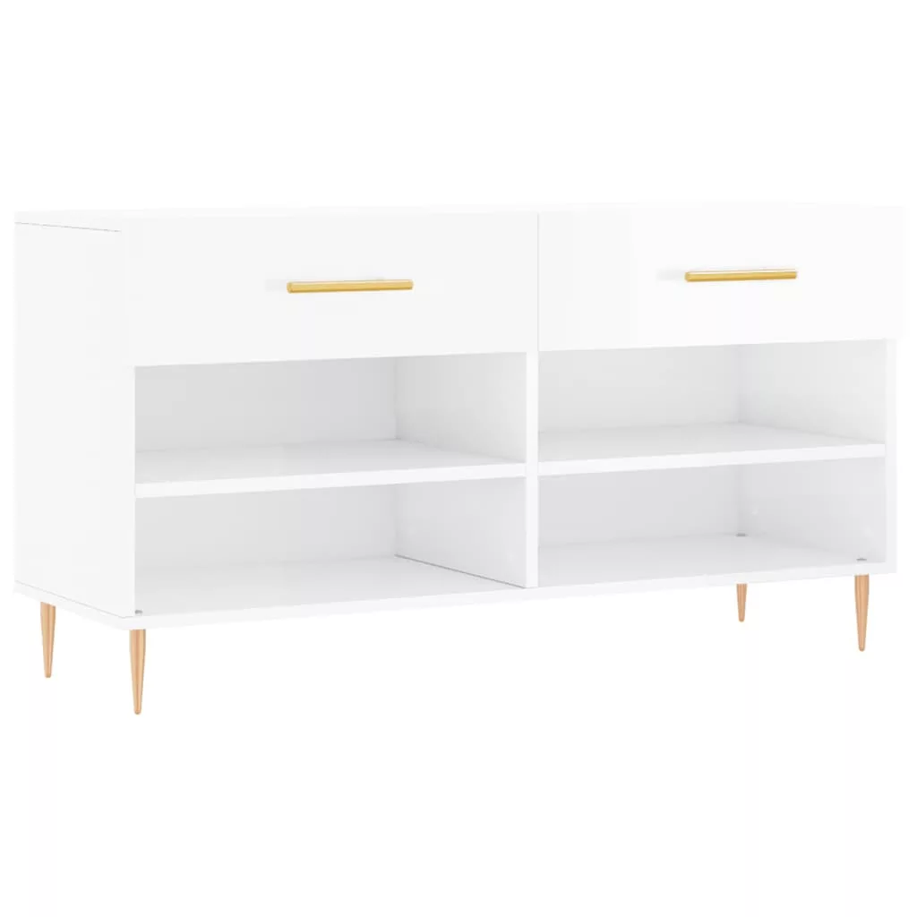 magasfényű fehér szerelt fa cipőpolc 102x35x55 cm