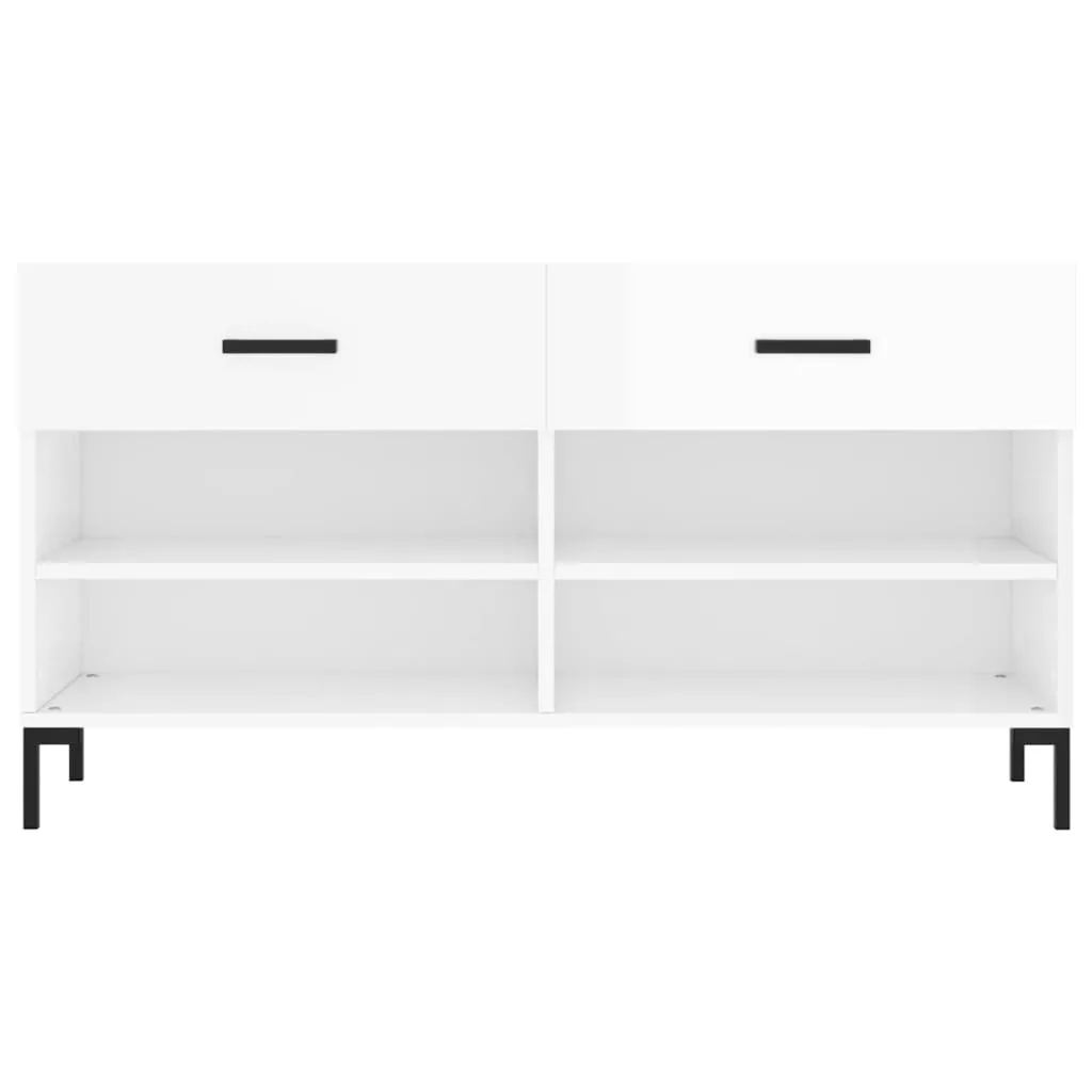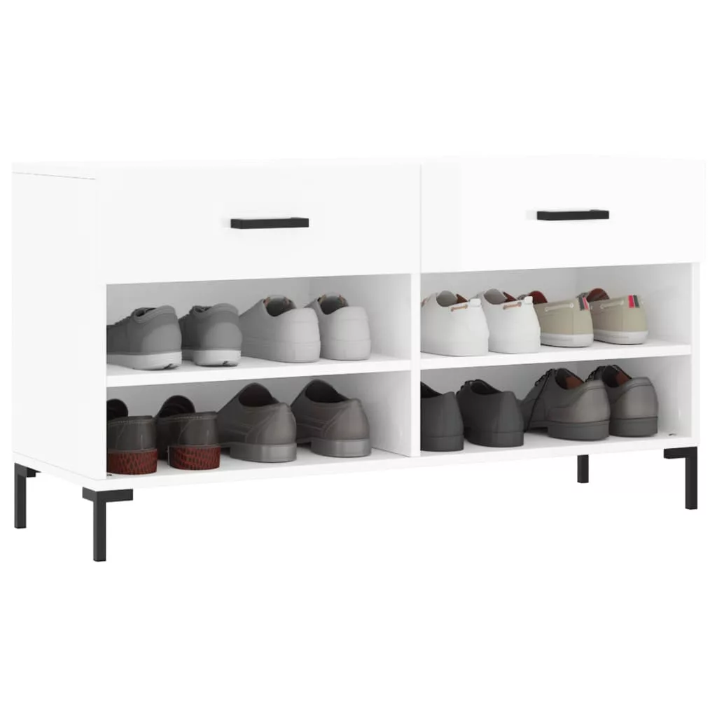 magasfényű fehér szerelt fa cipőpolc 102x35x55 cm