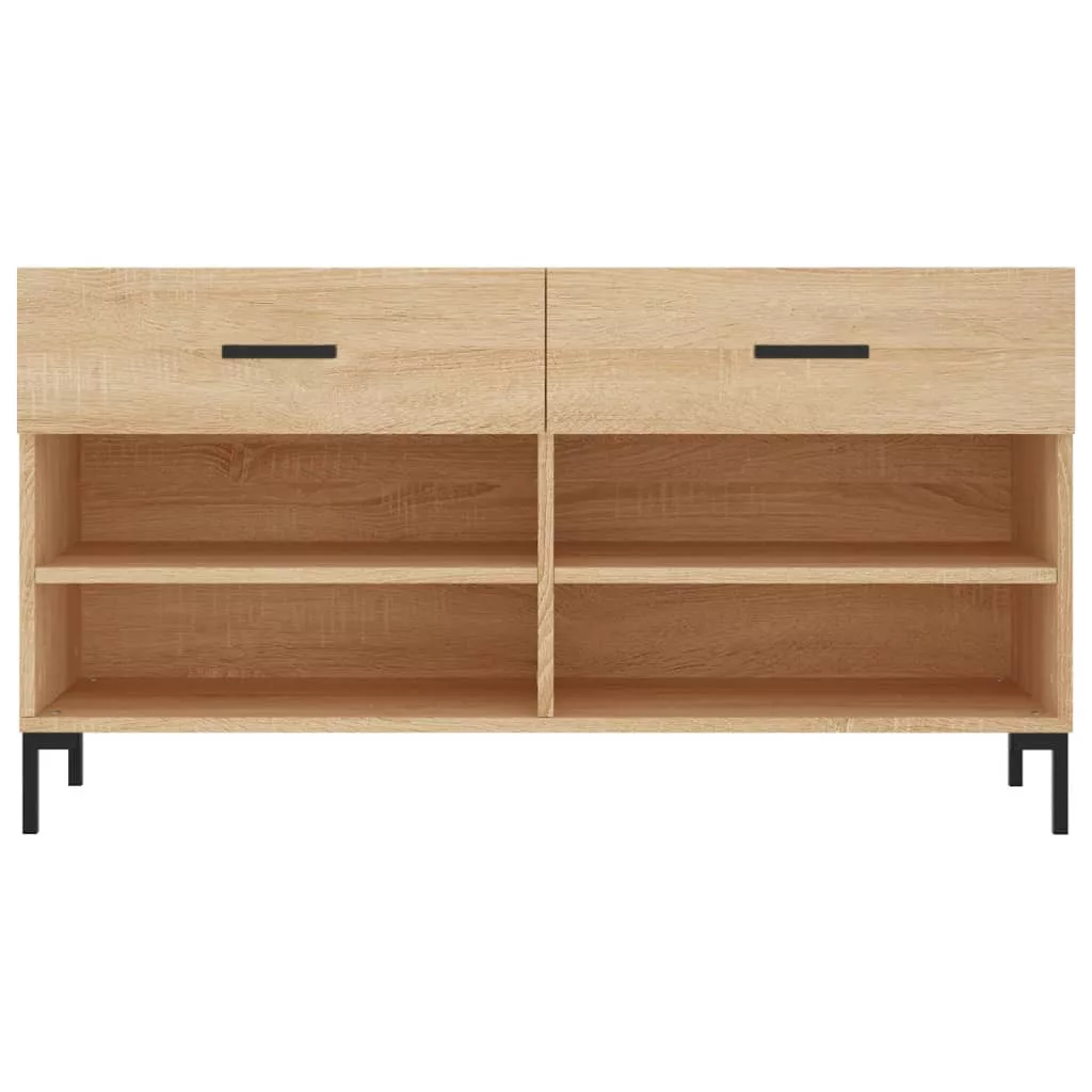 Tárolja cipőit ezen a stílusos és praktikus cipőpolcon. Tökéletes választás cipői rendezett tárolásához. Tartós anyag: A szerelt fa kivételes minőségű, sima felületű, szilárd, stabil, és ellenáll a nedvességnek.Bőséges tárolóhely: A cipőpolcon 2 fiók és 4 polc található, amelyek elegendő helyet biztosítanak cipőinek és egyéb apró tárgyaknak.Robusztus felső lap: A cipőszekrény masszív teteje lehetővé teszi, hogy kényelmesen üljön, miközben le- vagy felhúzza cipőjét.Vaslábak: A vaslábak ipari stílust csempésznek otthonába, és a stabilitásról is gondoskodnak. Figyelem:A felborulás elkerülése érdekében ezt a terméket a mellékelt fali rögzítőeszközzel kell használni. Maximum 110 kg ülésenként.