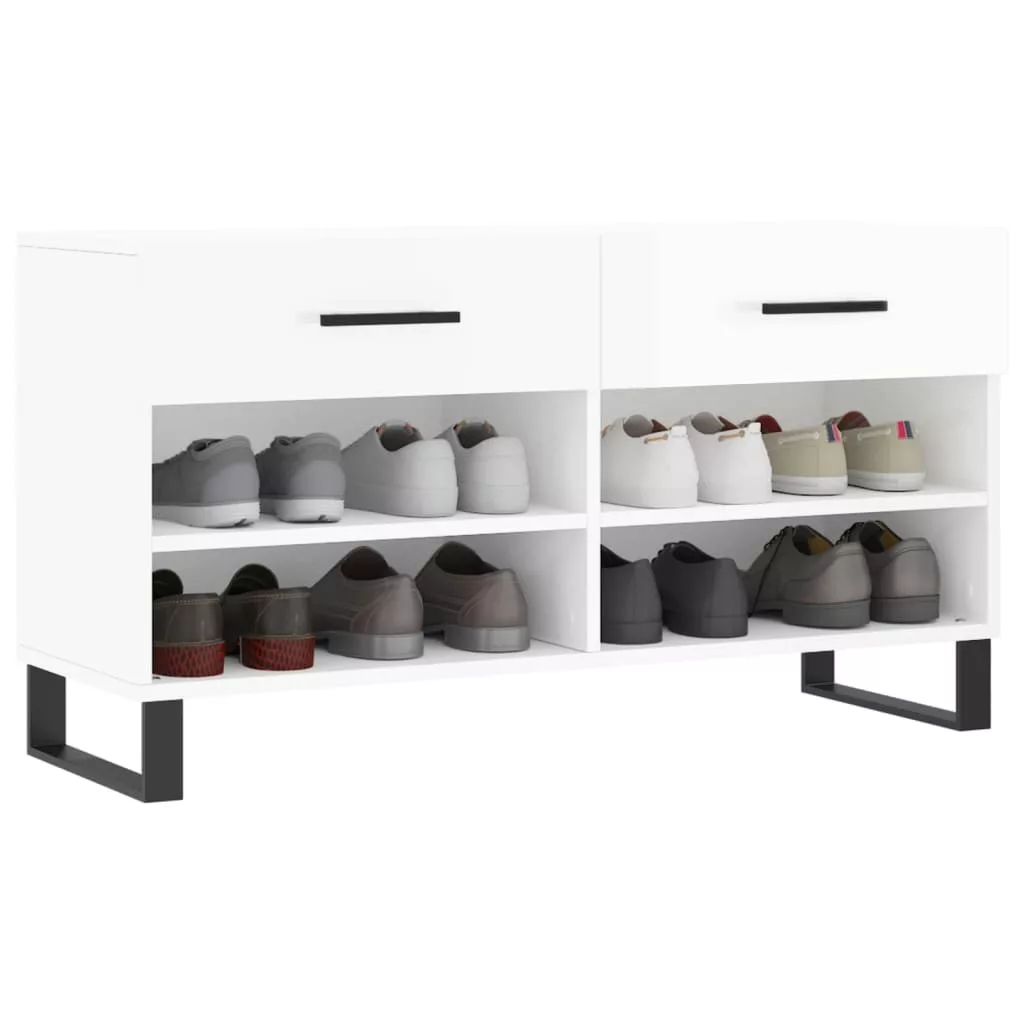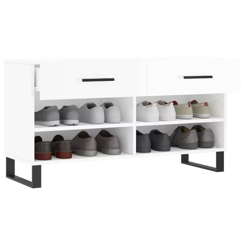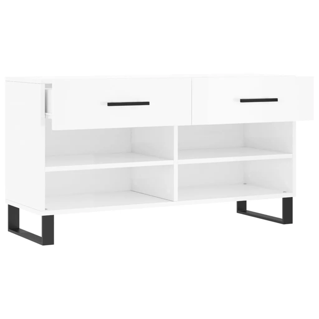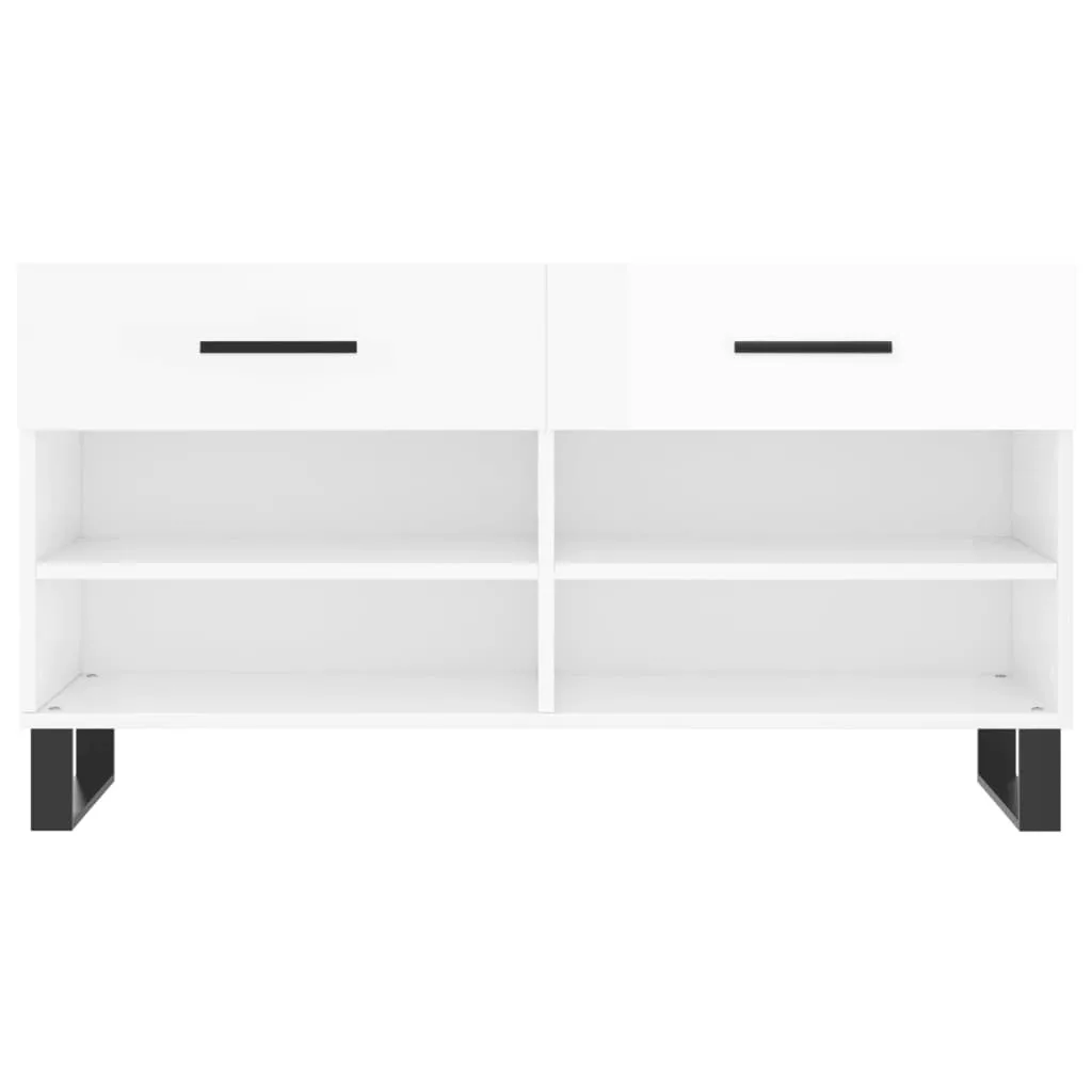 magasfényű fehér szerelt fa cipőpolc 102x35x55 cm