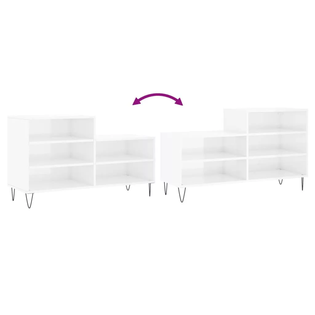 magasfényű fehér szerelt fa cipősszekrény 102x36x60 cm