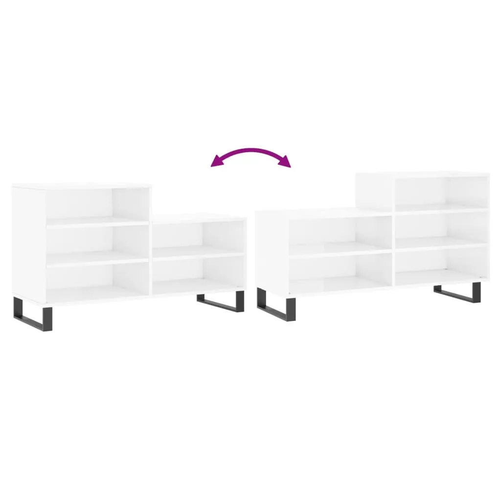 magasfényű fehér szerelt fa cipősszekrény 102x36x60 cm