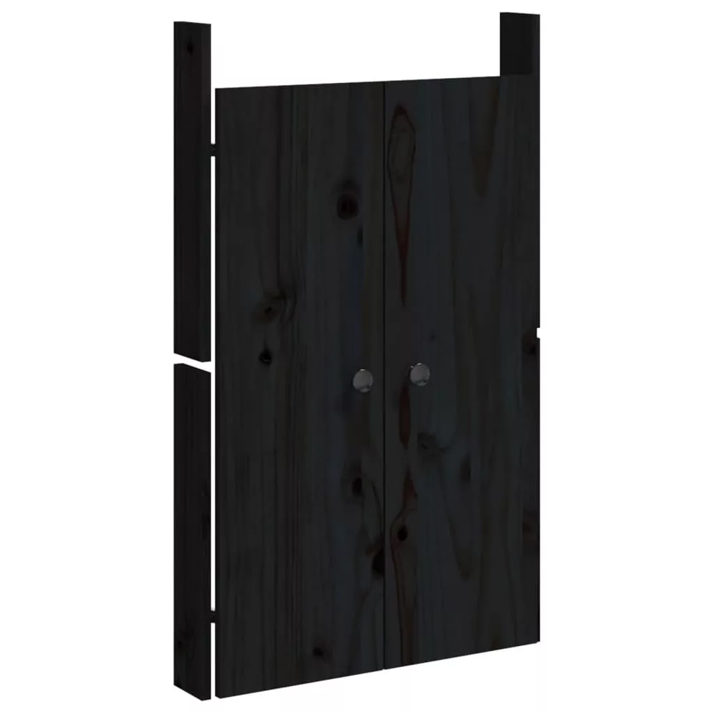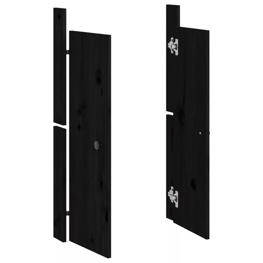2 db fekete tömör fenyőfa kültéri konyhaszekrény ajtó 50x9x82cm