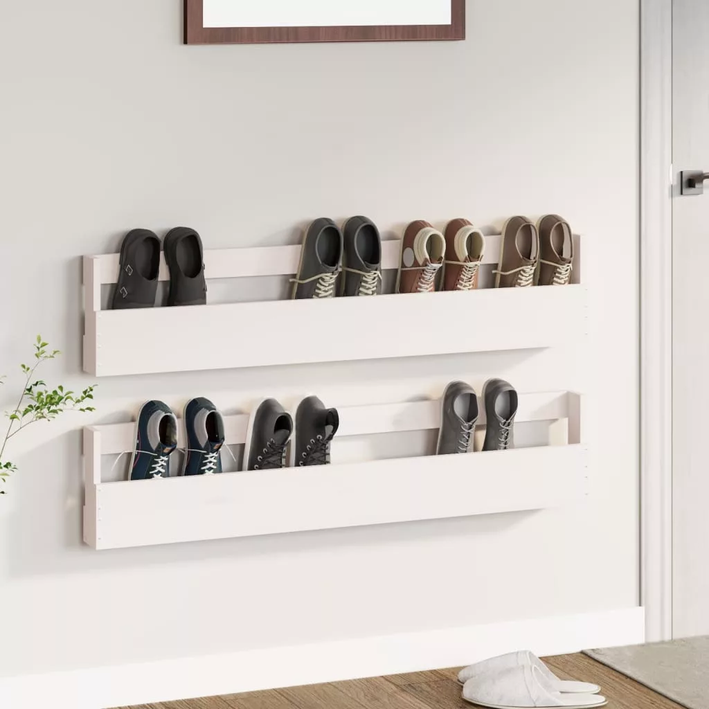 2 db fehér tömör fenyőfa fali cipőtartó 110 x 9 x 23 cm