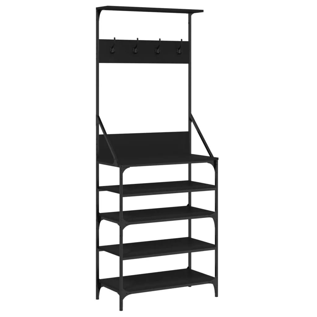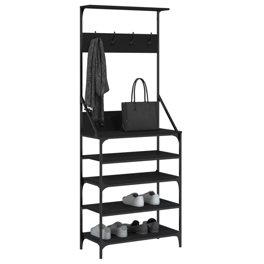 fekete ruhafogas cipőpolccal 70x34x184 cm