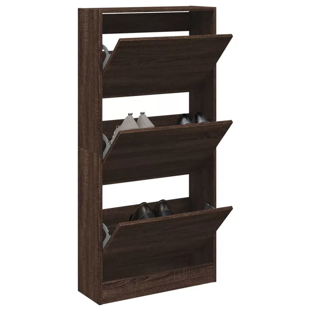 barna tölgyszínű szerelt fa cipőszekrény 60x 21 x 125,5 cm
