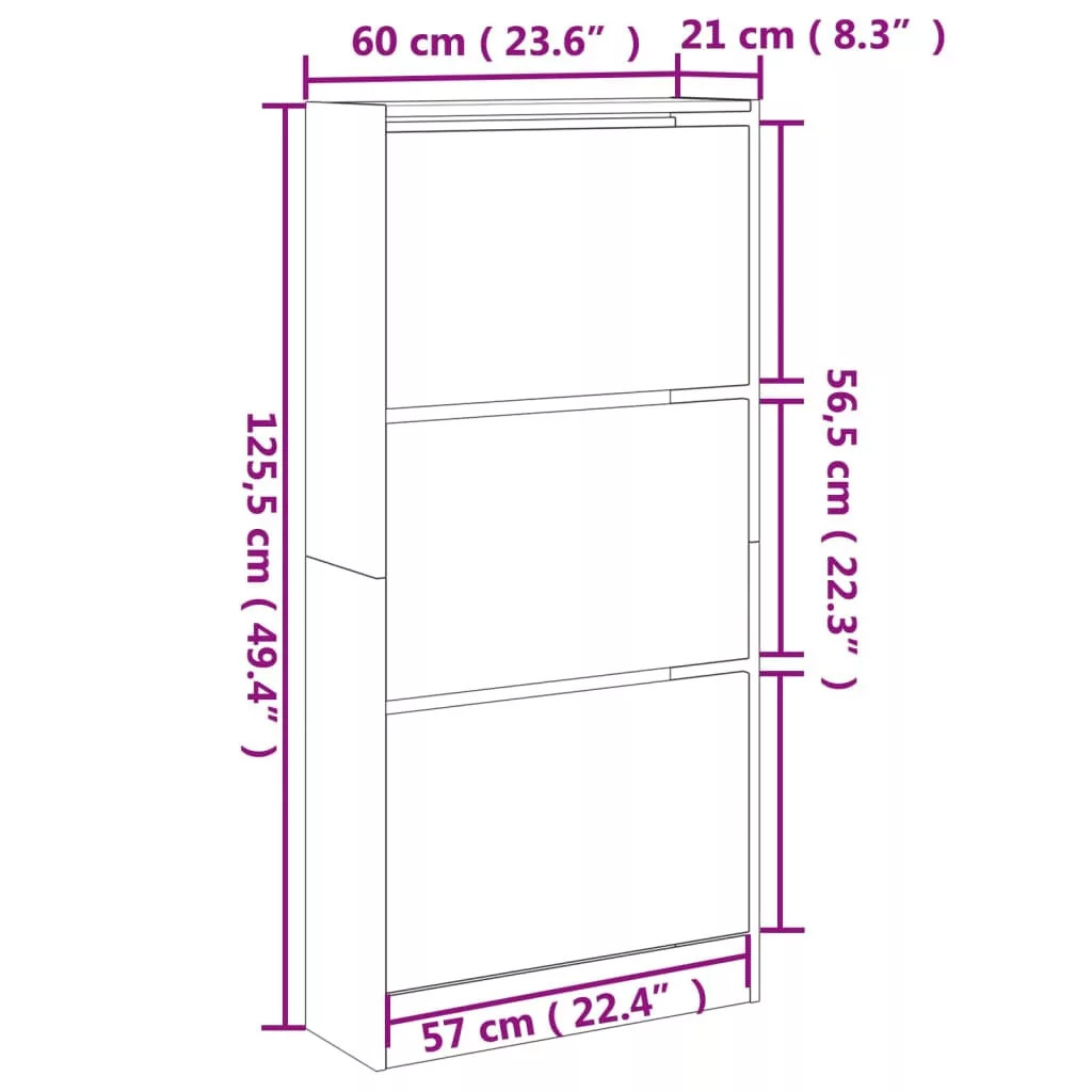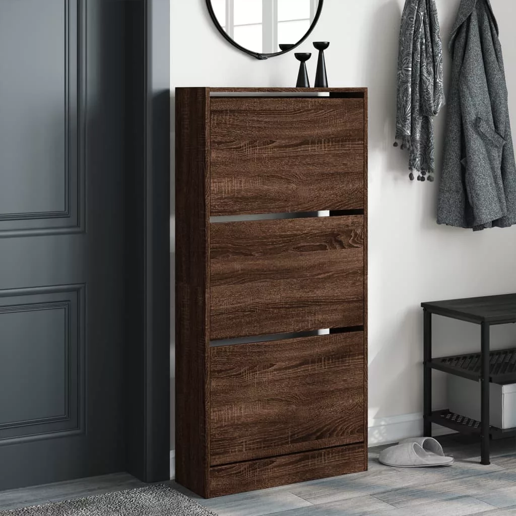 Ez a cipőszekrény kompakt kialakításának köszönhetően kiváló választás cipői rendszerezett tárolására, különösen keskeny és szűk helyeken. Tartós anyag: A szerelt fa kivételes minőségű, sima felületű, szilárd, stabil, és ellenáll a nedvességnek.Bőséges tárolóhely: Ez a cipőtartó 3 kihajtható fiókkal rendelkezik, melyek elegendő helyet biztosítanak a cipők kéznél tartásához és rendezett tárolásához.Praktikus felső lap: A cipőszekrény erős teteje ideális dísztárgyak, például képkeretek vagy cserepes növények elhelyezésére.Helytakarékos kialakítás: A vékony cipőtároló szekrényt úgy tervezték, hogy tökéletesen illeszkedjen olyan kis helyekre, mint az előszoba, folyosó, mosókonyha stb. Figyelem:A felborulás elkerülése érdekében ezt a terméket a mellékelt fali rögzítőeszközzel kell használni.