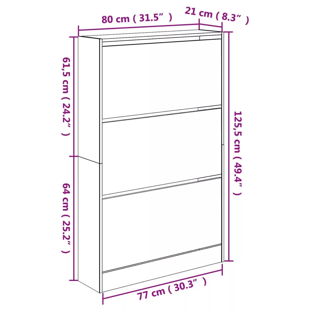 füstös tölgy színű szerelt fa cipőszekrény 80 x 21 x 125,5 cm