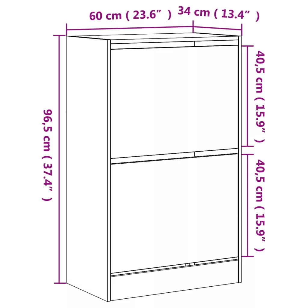 Ez a cipőszekrény kompakt kialakításának köszönhetően kiváló választás cipői rendszerezett tárolására, különösen keskeny és szűk helyeken. Tartós anyag: A szerelt fa kivételes minőségű, sima felületű, szilárd, stabil, és ellenáll a nedvességnek.Bőséges tárolóhely: Ez a cipőtartó 2 kihajtható fiókkal rendelkezik, fiókonként 2 szinttel, melyek elegendő helyet biztosítanak a cipők kéznél tartásához és rendezett tárolásához.Praktikus felső lap: A cipőszekrény erős teteje ideális dísztárgyak, például képkeretek vagy cserepes növények elhelyezésére.Helytakarékos kialakítás: A vékony cipőtároló szekrényt úgy tervezték, hogy tökéletesen illeszkedjen olyan kis helyekre, mint az előszoba, folyosó, mosókonyha stb. Figyelem:A felborulás elkerülése érdekében ezt a terméket a mellékelt fali rögzítőeszközzel kell használni.