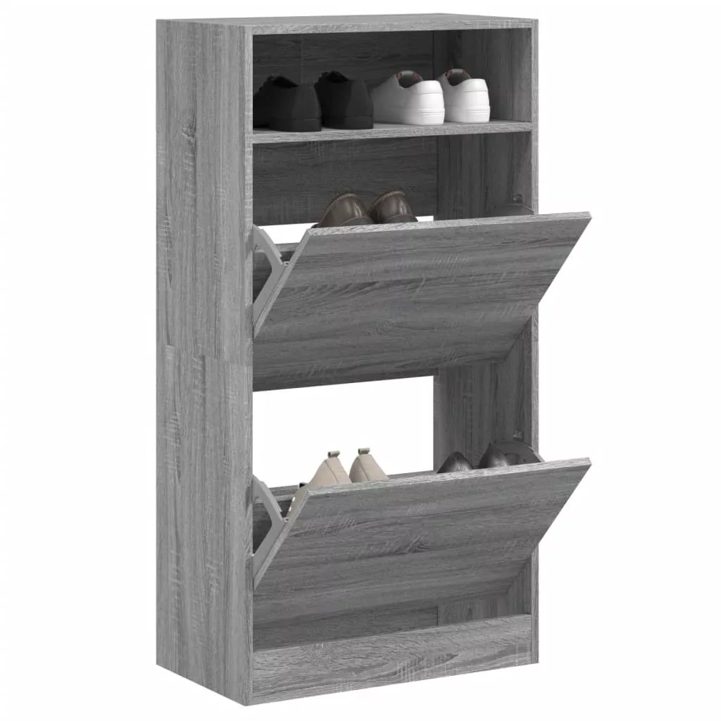 szürke sonoma színű szerelt fa cipőszekrény 60x34x116 cm