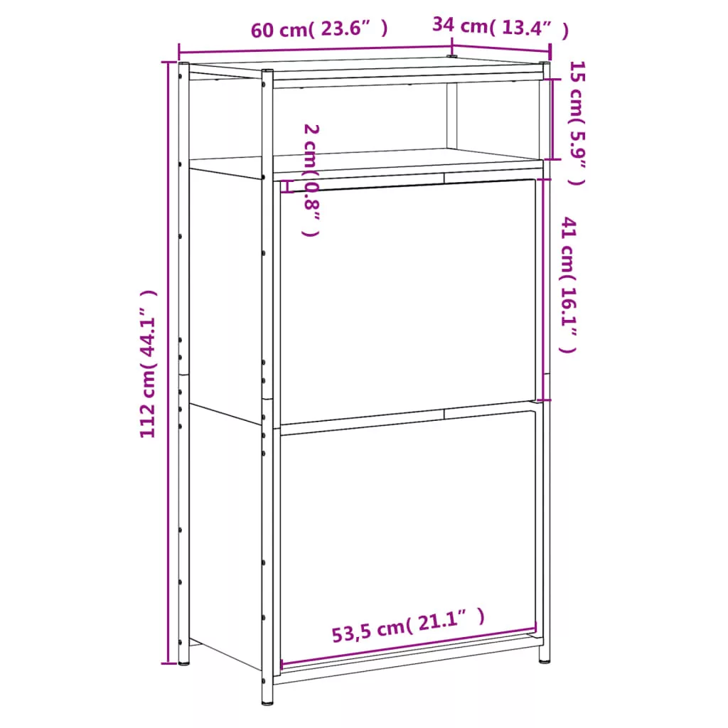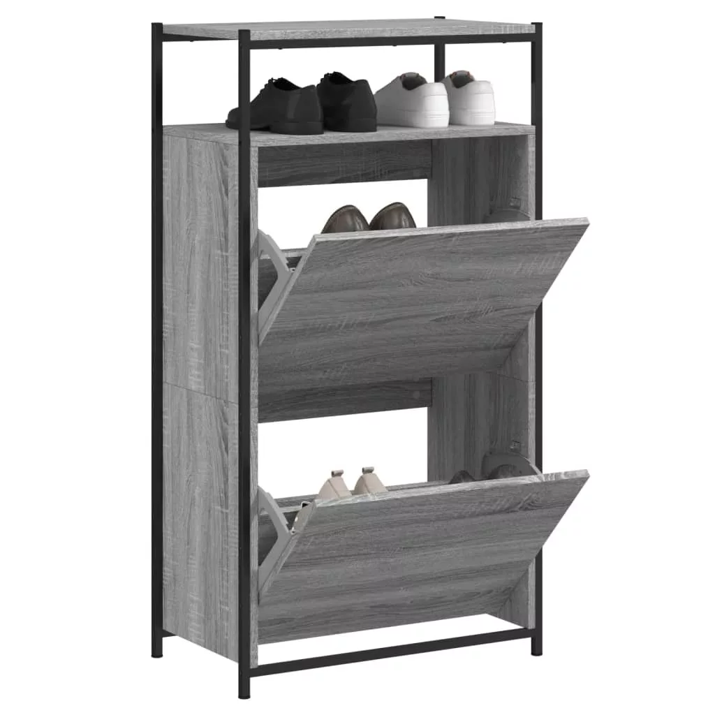 szürke sonoma színű szerelt fa cipőszekrény 60x34x112 cm