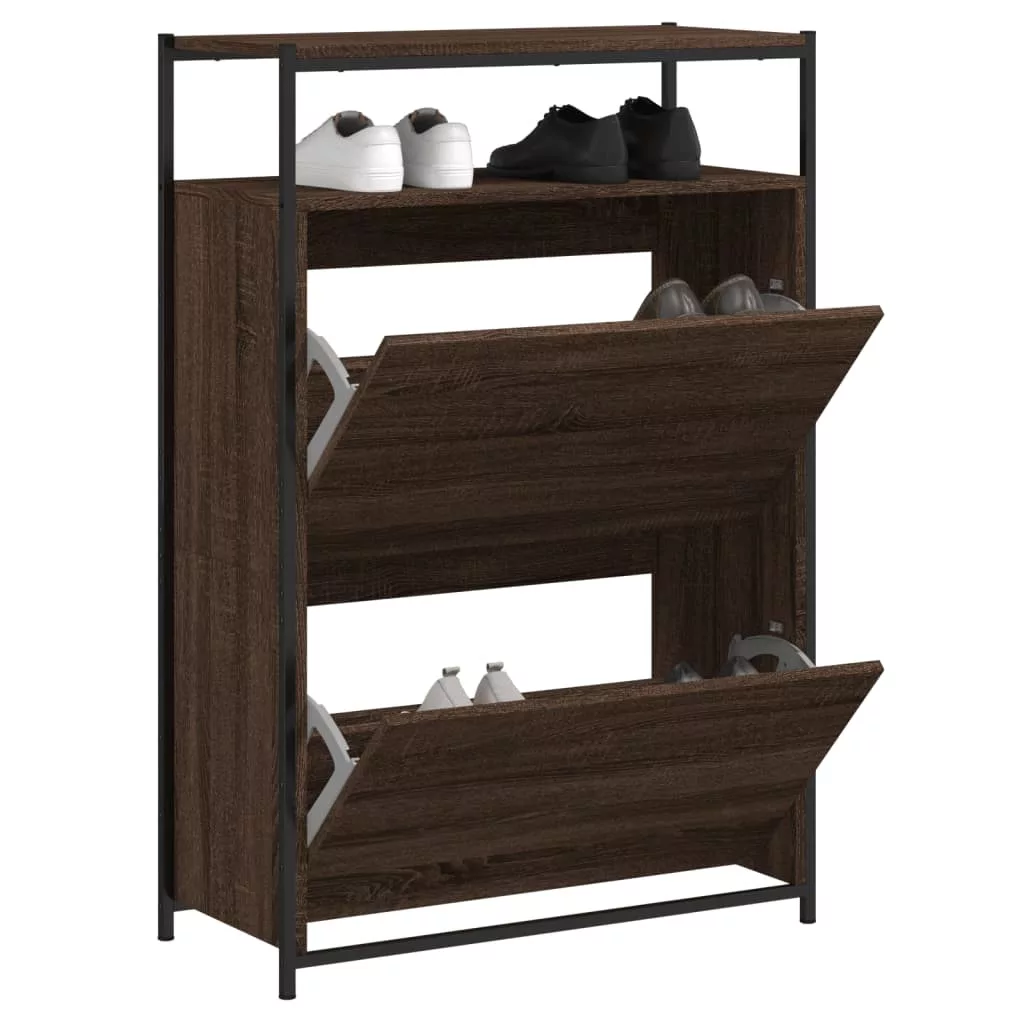 barna tölgyszínű szerelt fa cipősszekrény 75 x 34 x 112 cm