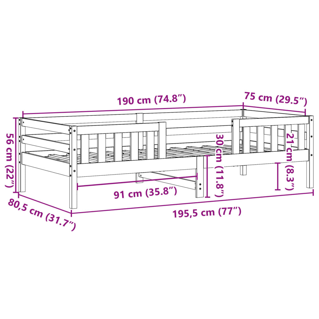 tömör fenyőfa ágy matrac nélkül 75 x 190 cm