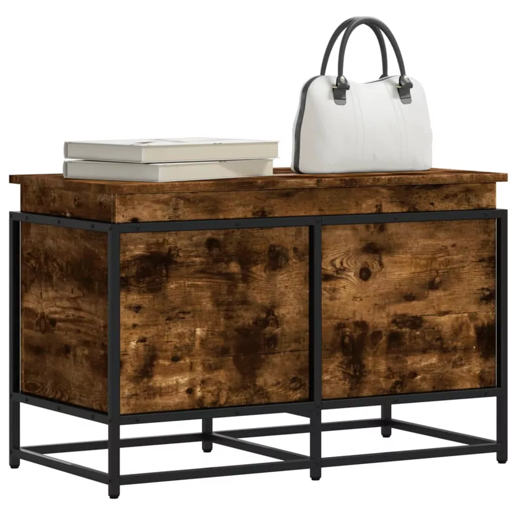 füstös tölgy színű szerelt fa tárolóláda fedéllel 80x40x51,5 cm