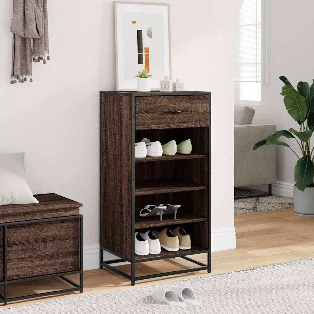 barna tölgy színű szerelt fa cipőtartó 48x38x97,5 cm