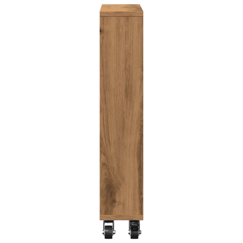 kézműves tölgy színű szerelt fa keskeny tárolókocsi 48x13x68 cm