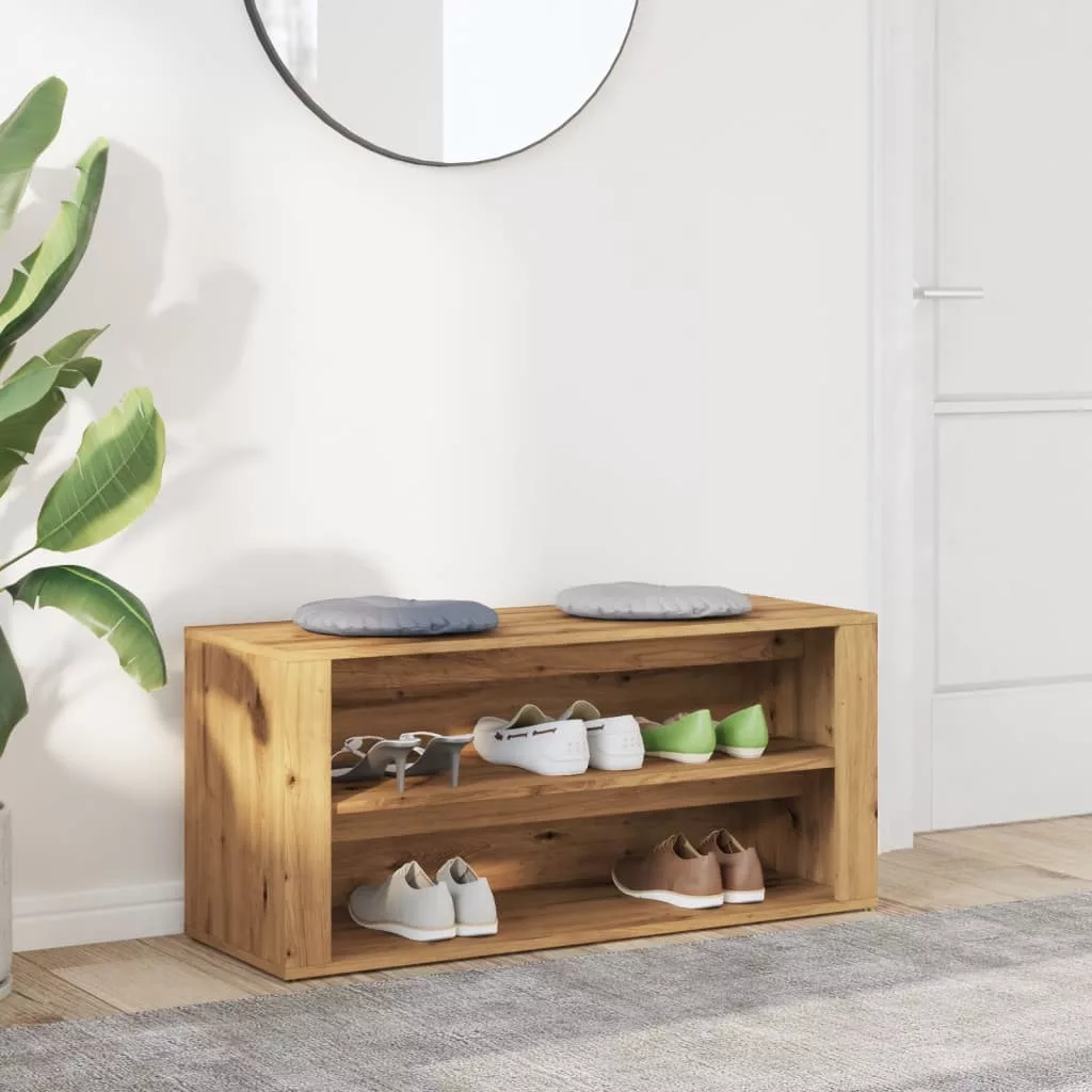 Tartsa cipőit rendben és portól mentesen, és teremtsen takaros környezetet ezzel az elegáns cipőtároló paddal! Masszív anyag: A szerelt fa kivételes minőségű, sima felületű, szilárd, stabil, és ellenáll a nedvességnek. A szerelt fából készült cipőtároló könnyen tisztítható.Bőséges tárolóhely: Ez az előszobapad 2 rekesszel rendelkezik, így bőséges helyet biztosít mindenféle cipő tárolására.Robusztus felső lap: A cipőtároló pad masszív teteje lehetővé teszi, hogy kényelmesen üljön, miközben le- vagy felhúzza cipőjét.Könnyen karbantartható: A cipőtároló pad könnyen tisztítható nedves ruhával, és kevesebb karbantartást igényel.