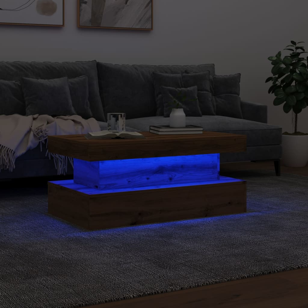 kézműves tölgy színű dohányzóasztal LED-lámpákkal 90x50x40 cm