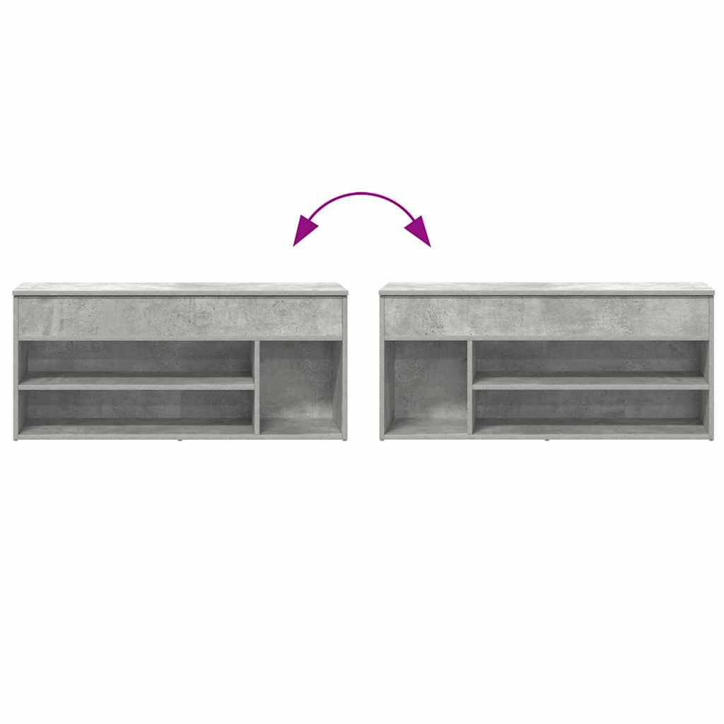 betonszürke szerelt fa cipőpolc 102x30,5x45 cm