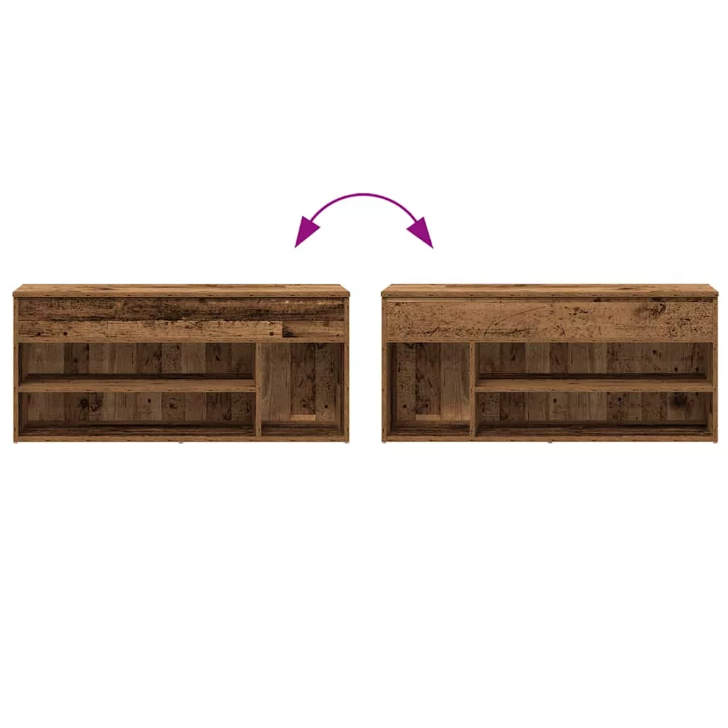 antik fa színű szerelt fa cipőtároló pad 102x30,5x45 cm