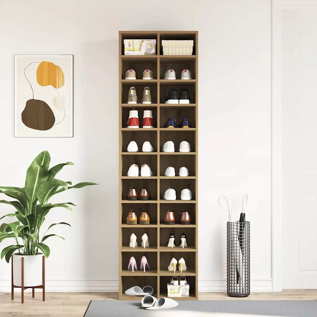 Tartsa cipőit rendben, és teremtsen takaros környezetet ezzel az elegáns cipősszekrénnyel! Stabil és tartós anyag: A szerelt fa tartós és stabil anyag sima felülettel, amely ellenáll a nedvességnek, a vetemedésnek és a hasadásnak, így megbízható választás különféle célokhoz.Bőséges tárolóhely: A cipőszekrény bőséges tárolóhelyet biztosít a különböző cipők számára, rendezetten és könnyen hozzáférhetően tartva azokat.Könnyen karbantartható: A cipőszervező sima felületének köszönhetően könnyen tisztítható nedves ruhával, és kevesebb karbantartást igényel.Stílusos kialakítás: A cipőtároló elegáns és stílusos kialakítással büszkélkedhet, így tökéletes kiegészítője a belső térnek, amely könnyedén kiegészíti a különböző lakberendezési stílusokat. Jó tudni:A falon belüli csavarok és dugók nem alaptartozékok. Azt tanácsoljuk, hogy keressen és használjon kifejezetten az Ön falához megfelelő csavarokat és dugókat. Ha nem biztos benne, konzultálhat egy szakemberrel. Kérjük, olvassa el és kövesse az utasítások minden lépését. Figyelem:A felborulás elkerülése érdekében ezt a terméket a mellékelt fali rögzítőeszközzel kell használni.