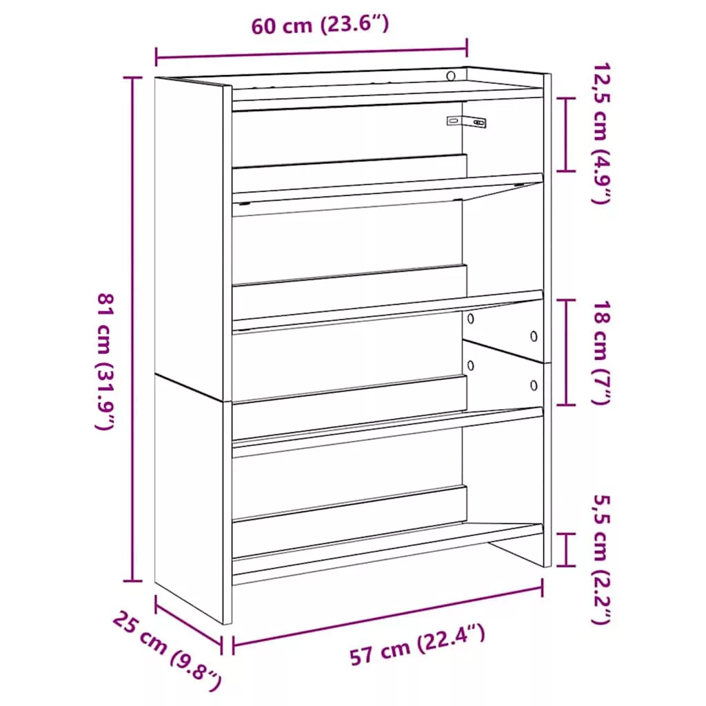 fehér szerelt fa cipőtároló szekrény 60x25x81 cm