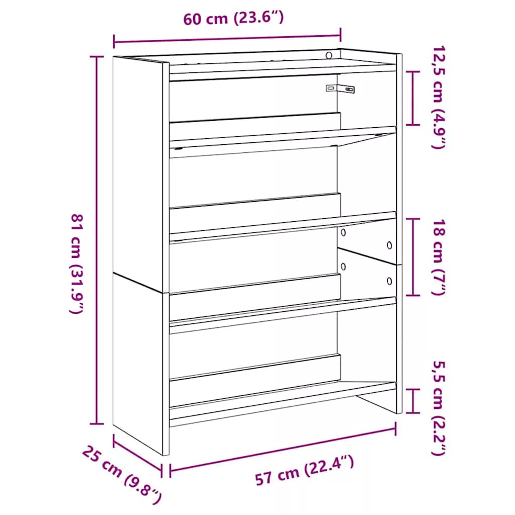 sonoma tölgy színű szerelt fa cipőtartó 60x25x81 cm
