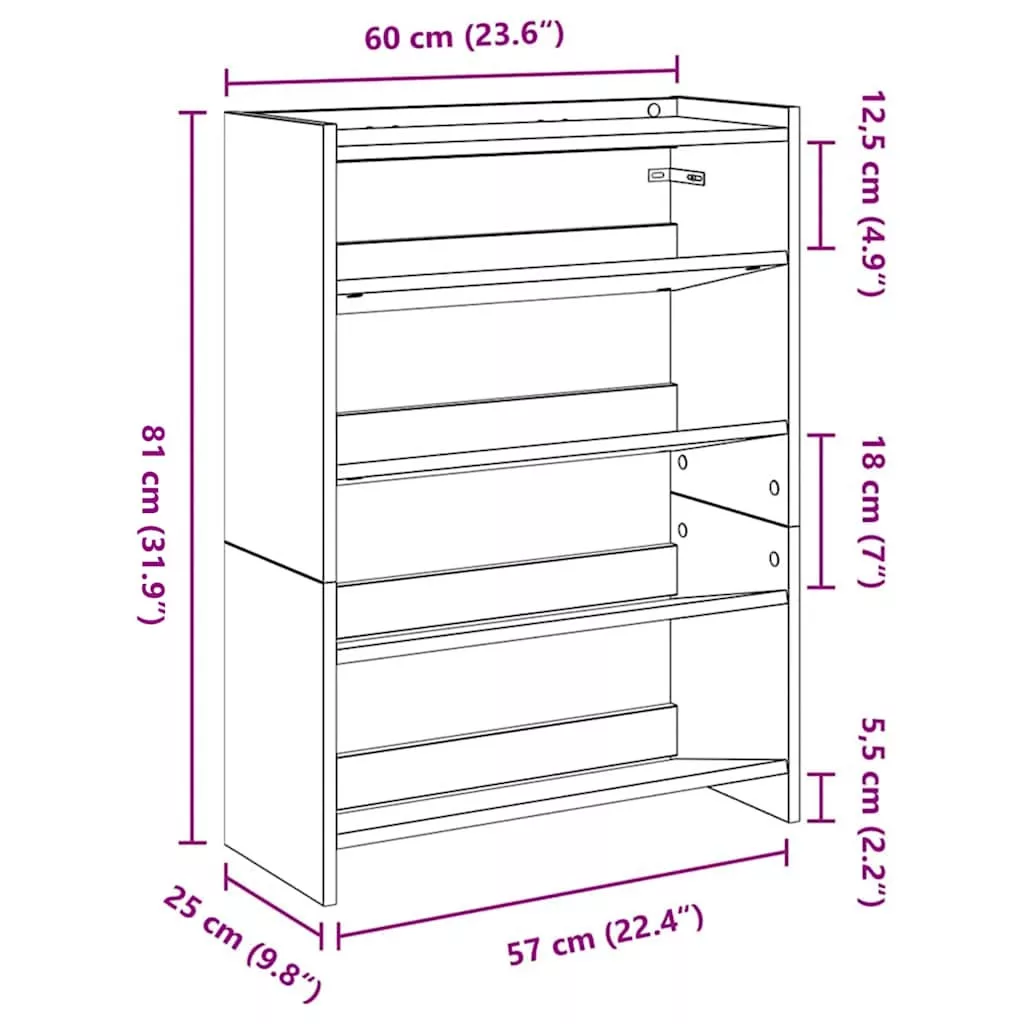 füstös tölgy színű szerelt fa cipőtartó 60x25x81 cm