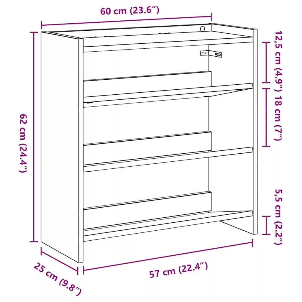szürke sonoma színű szerelt fa cipőtartó 60x25x62 cm