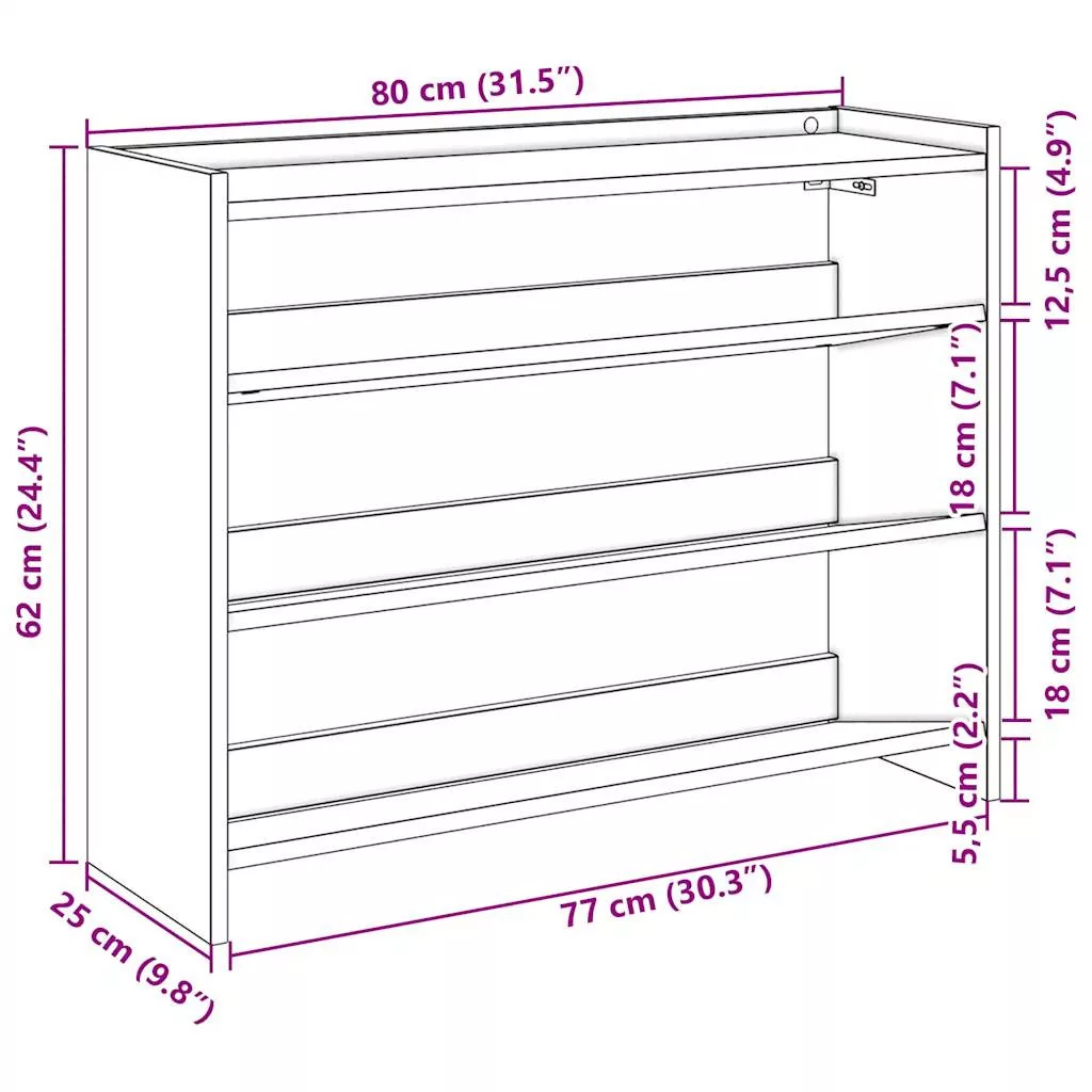 kézműves tölgy színű szerelt fa cipősszekrény 80x25x62 cm
