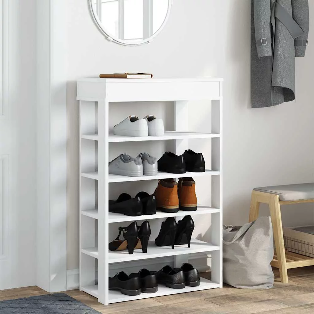 Tartsa cipőit rendben, és teremtsen takaros környezetet ezzel az elegáns cipőtartóval! Stabil és tartós anyag: A szerelt fa tartós és stabil anyag sima felülettel, amely ellenáll a nedvességnek, a vetemedésnek és a hasadásnak, így megbízható választás különféle célokhoz.Bőséges tárolóhely: A cipőtartó polcai elegendő helyet biztosítanak a cipők tárolásához. Ezzel a praktikus cipőtárolóval nem fog többé bosszankodni azon, hogy a lábbelik elfoglalják az egész padlót.Praktikus felső lap: A cipőtartó stabil felső polca ideális dekorációs tárgyak, képkeretek elhelyezésére, vagy olyan dolgok tárolására, mint a kulcsok vagy pénztárcák, amelyekre elérhető közelségben lehet szükséged.Helytakarékos kialakítás: A karcsú cipőtartót úgy tervezték, hogy tökéletesen illeszkedjen kis helyiségekbe, például előszobákba, előszobákba, mosdókba stb.Könnyen karbantartható: Sima felületének köszönhetően az asztal könnyen tisztítható nedves ruhával, és kevés karbantartást igényel.Figyelem:A felborulás elkerülése érdekében ezt a terméket a mellékelt fali rögzítőeszközzel kell használni.