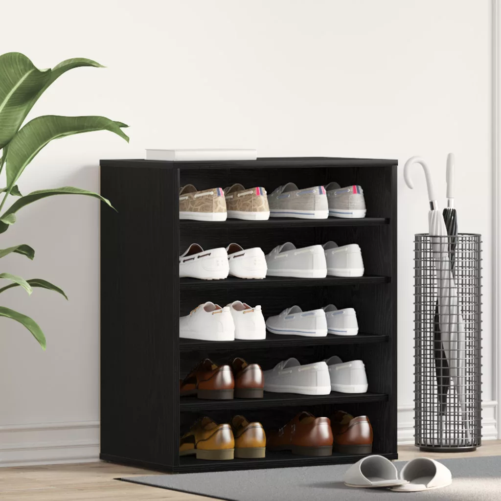 Ez a cipőtároló szekrény alapdarab minden modern otthonba, remekül segít rendben tartani az előszobádat, folyosódat vagy hálószobádat, megakadályozva a káoszt. Kiváló minőségű szerelt fából készült, klasszikus fekete tölgy felülettel, eleganciát és praktikát ötvöz, okos módot kínálva a cipők tárolására. Hatalmas tárolókapacitás: Ez a darab négy polccal büszkélkedhet, rengeteg helyet adva a különböző cipőknek—csizmák, edzőcipők, alkalmi cipők—minden a helyén marad. Minimalista esztétika: Egyszerű és stílusos, jól illik a modern berendezéshez, így nagyszerű kiegészítő, ami feldobja a tered. Tartós és stabil szerkezet: Masszív szerelt fával készült, ez a szekrény a mindennapi lábbelik szilárd tárolási megoldását nyújtja. Hatékony telepítés: Könnyen követhető utasításokkal érkezik a gyors összeszereléshez—csak kapd elő a csavarhúzót, és már kezdheted is! Átgondolt méretek: 60 cm hosszú, 35 cm széles és 70 cm magas, úgy tervezve, hogy maximalizálja a helyet, miközben rengeteg tárolást kínál a cipőidnek.