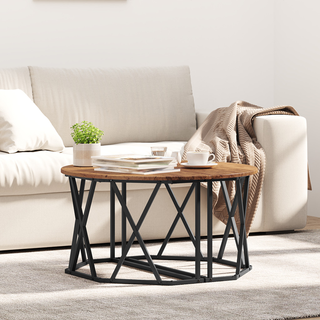 Kávézóasztal Régi Fa 80x80x42 cm Mérnökelt Fa