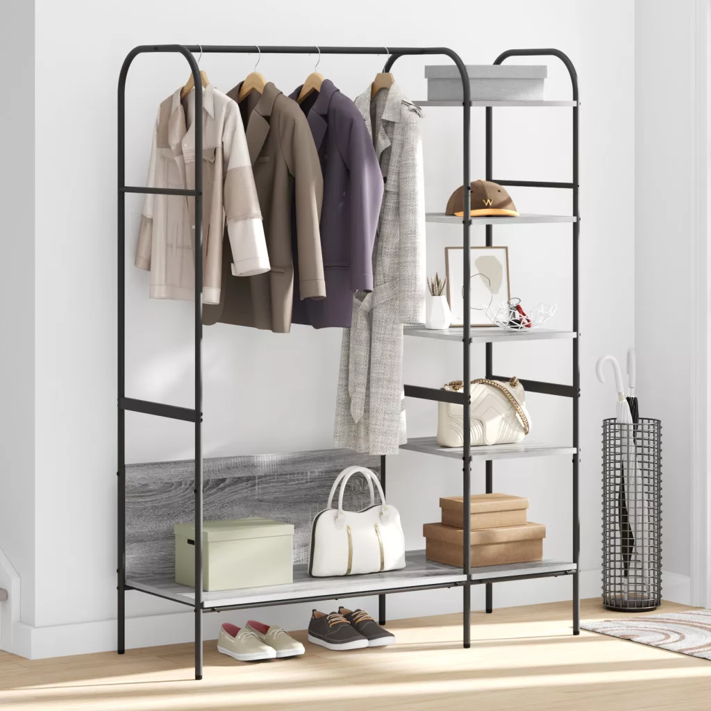 Ez a polcokkal rendelkező ruhásszekrény lenyűgöző szürke sonoma felülettel rendelkezik, ami tökéletes a modern megjelenéshez. Ipari hangulattal és sima felülettel stílusos megoldást kínál a ruhák rendszerezésére, emellett praktikus tárolást is biztosít. Kiváló választás, ha szeretnéd rendbe rakni az élettered. Stílusos Design: A sima szürke sonoma felület modern kinézetet ad, amit minden helyiségben jól mutathatsz, stílusosan tálalva a ruháidat. Bőséges Tárolás: Öt tágas polc biztosít rengeteg helyet a ruhák és kiegészítők rendezett tárolására. Kopásállóság: Tartós, rozsda- és korrózióálló anyagokból készült, így az állvány időtálló lesz. Falra Szerelhető: A falra akasztásra tervezett dizájn szépen felszabadítja a padlóteret. Könnyű Összeszerelés: Minden szükséges tartozék benne van a gyors és egyszerű összeszereléshez.