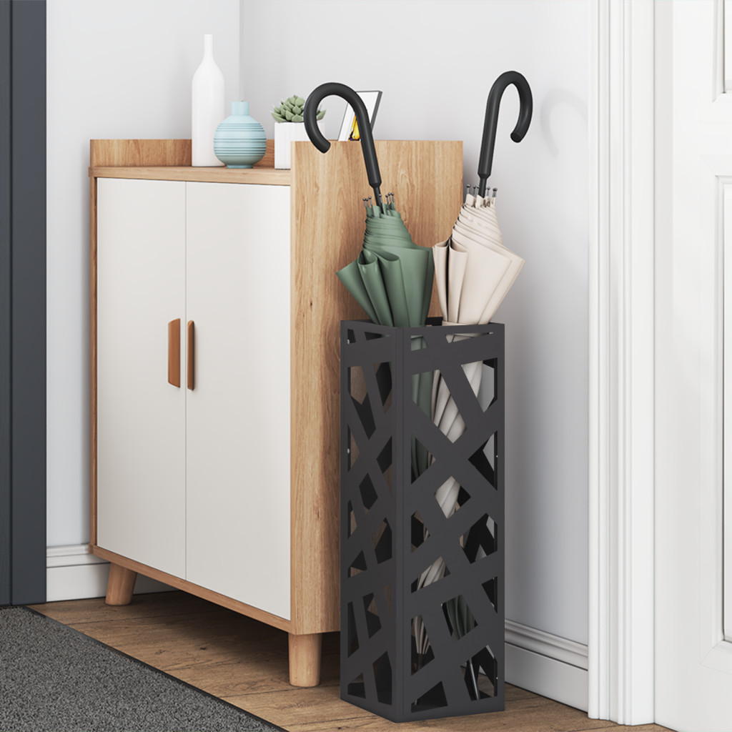 Ez az esernyőtartó szuper stílusos kiegészítője bármely folyosónak. A figyelemfelkeltő fekete szín valódi pluszt ad, miközben rendkívül praktikus is. Akármi méretű esernyőt el tud tárolni, így a bejáratod rendezetten és stílusosan néz ki, a geometrikus mintázat pedig még hívogatóbbá teszi az egészet. Storage Capability: Több ernyőt és egyéb hasznos cuccot tárol, sokoldalúságot és funkciót ad a modern folyosóknak. Stílusos dizájn: Fekete színe és geometrikus mintája jól illik a kortárs dekorációhoz, elegáns érintést adva bármilyen térnek. Helytakarékos: Négyszögletes formája miatt kompakt területekre ideális, segít a kis bejáratok rendben tartásában. Durabilitás: Magas minőségű porszórt acélból készült, ez az esernyőtartó tartós megoldást kínál az otthonod számára. Egyszerű tisztítás: A matt felület minimális karbantartást igényel; egy gyors törlés nedves ruhával máris szép.