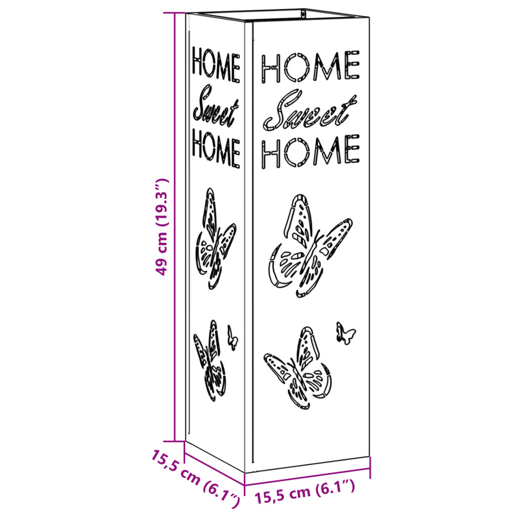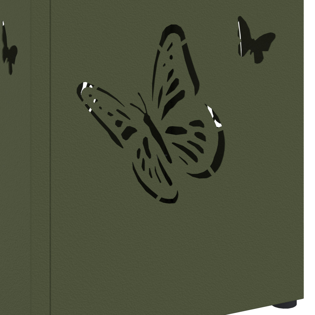 Ez a stílusos esernyőtartó egy szép dísz a folyosón, elegáns olívazöld bevonattal, ami nemcsak jól néz ki, hanem praktikus is. Biztosan meg tudja tartani az ernyőket, rendezetten tartva az előteret, miközben az egyedi dekoratív motívumok barátságos légkört teremtenek. Tároló Kapacitás: Több ernyőt, plusz extra hellyel a sokoldalú tárolásra. Stílusos Dizájn: Az olívazöld bevonat és a lepke mintázatok szépen mutatnak kortárs dekorációk mellett, eleganciát adva bármely területnek. Helytakarékos: Négyszögletes forma a padlótér maximálásához, kis helyet foglal el anélkül, hogy zsúfoltnak tűnne. Tartósság: Kiváló minőségű fémből készült, robusztus, így megbízható kiegészítő az otthonodba. Könnyű Tisztítás: A matt porbevonat nagyon alacsony karbantartást igényel; csak egy száraz ruhával kell áttörölni, hogy mindig tiszta legyen.