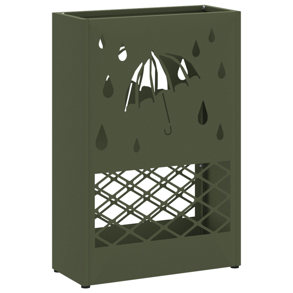 Ez a modern esernyőtartó okos és stílusos megoldás a bejáratodra, biztosítva, hogy a vizes esernyők rendezetten el legyenek rakva anélkül, hogy felfordulás okoznának. Négyszögletes formájával és olívazöld porbevonatos fémből készült, jól passzol a sokféle dekorhoz, közben praktikus tárolási megoldást ad más dolgaid számára is. Rengeteg tároló: Az esernyőtartónak tágas rekesze van, rengeteg helyet biztosítva esernyőknek és más dolgoknak, így minden kéznél van. Stílusos dizájn: A kedves esernyő és csepp minta eleganciát és modern stílust hoz a térbe, nem feledkezve meg a funkcióról sem. Robosztus felépítés: Porbevonatos acélból készült, ez az esernyőtartó tartós és erős marad, még a napi használat közben is. Beltéri használat: Csak beltéri terekhez készült, ez egy szuper kiegészítő az előszobába, előcsarnokba, vagy nappaliba. Egyszerű karbantartás: Matt felülete jól néz ki és könnyen tisztítható egy nedves ruhával, így tartva a tered tisztán.