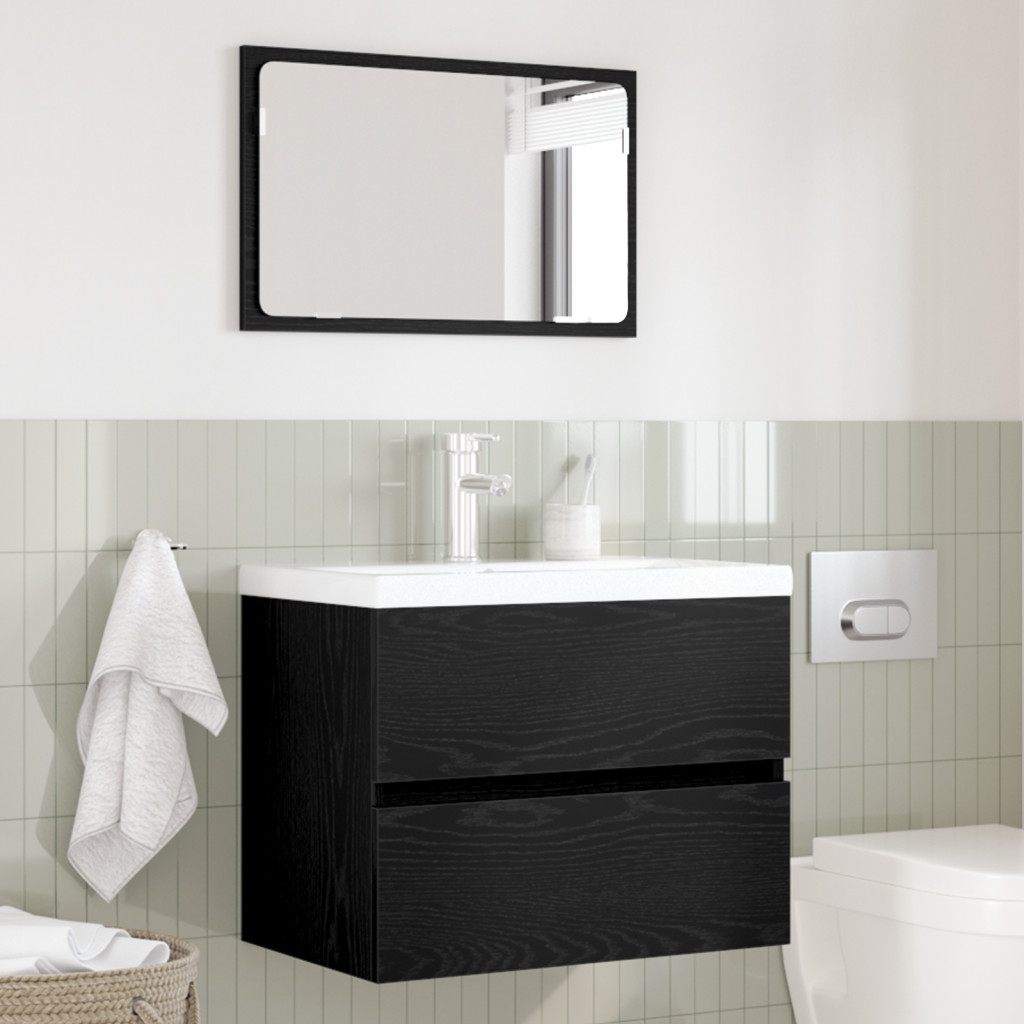 2 Darabos Fürdőszoba Bútor Szett Fekete Tölgy Szerelt Fa