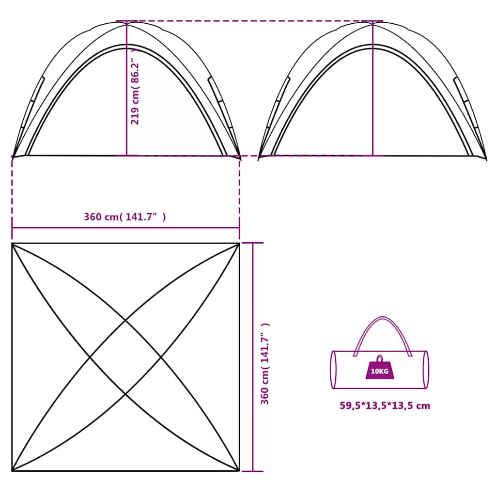 Sátor mérete: 360 x 360 x 219 cm (Ho x Szé x Ma)