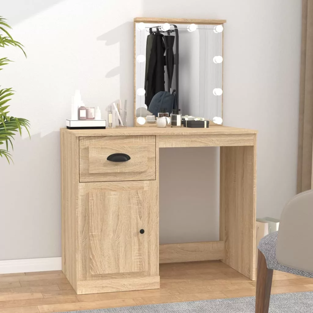 sonoma tölgy színű LED-es fésülködőasztal 90x50x132,5 cm