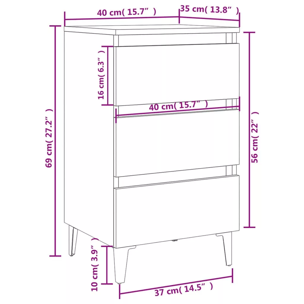 sonoma tölgy színű éjjeliszekrény fémlábakkal 40 x 35 x 69 cm