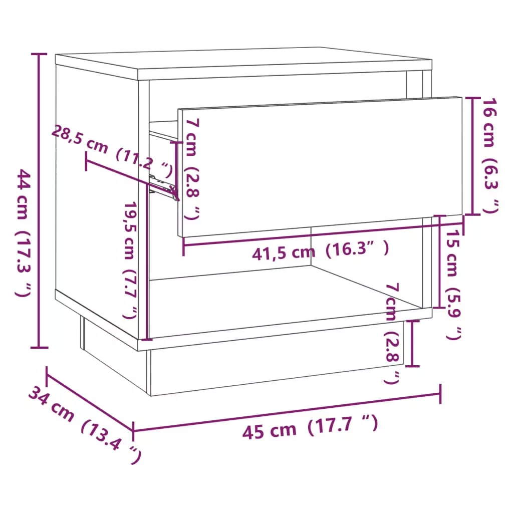 sonoma tölgy színű forgácslap éjjeliszekrény 45 x 34 x 44 cm