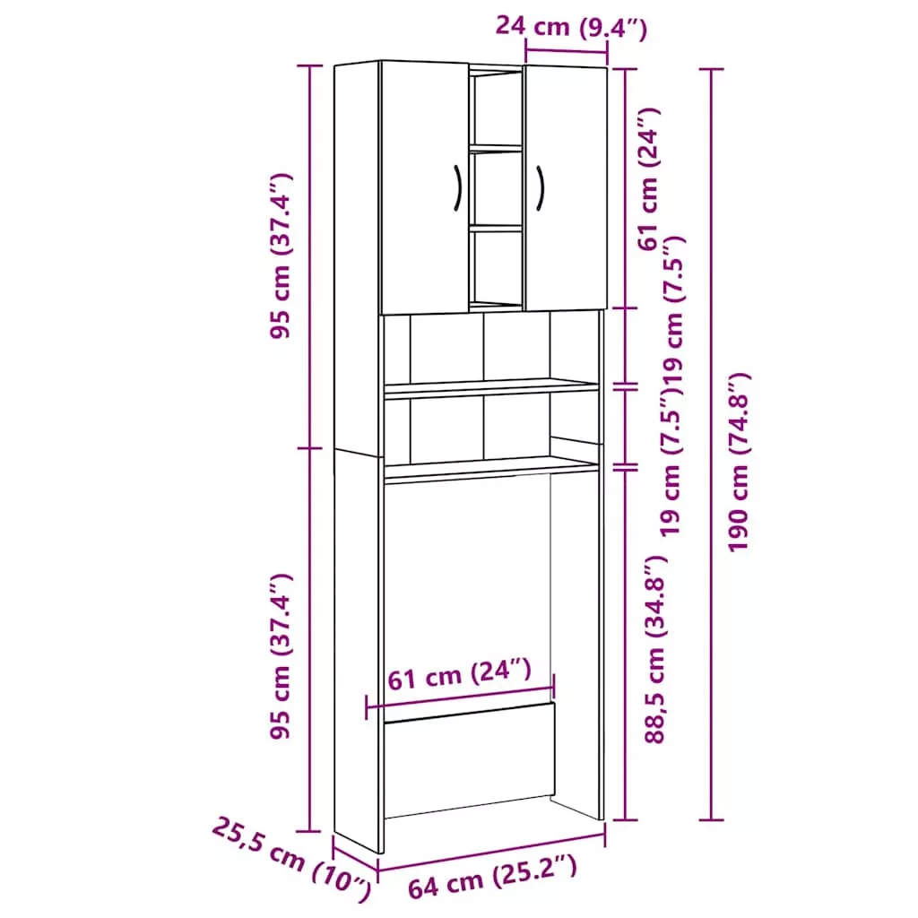 • Mérete: 64 x 25,5 x 190 cm (Szé x Mé x Ma)