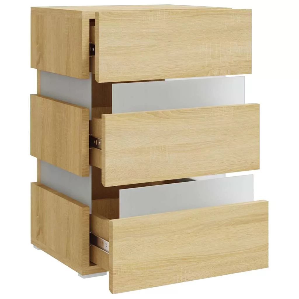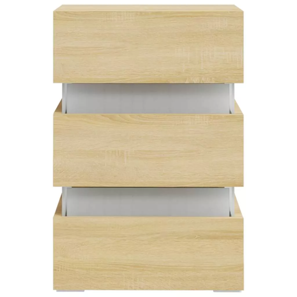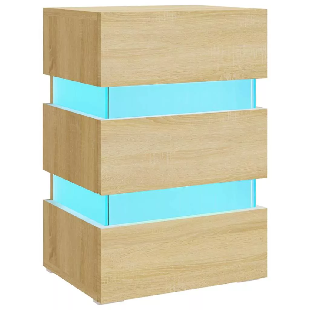 sonoma tölgy színű szerelt fa LED-es éjjeliszekrény 45x35x67 cm