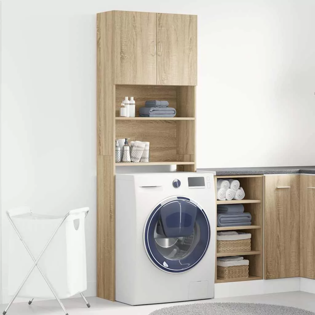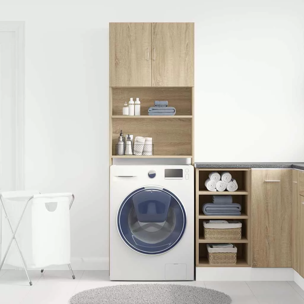 sonoma tölgy színű szerelt fa mosógépszekrény 64 x 24 x 190 cm