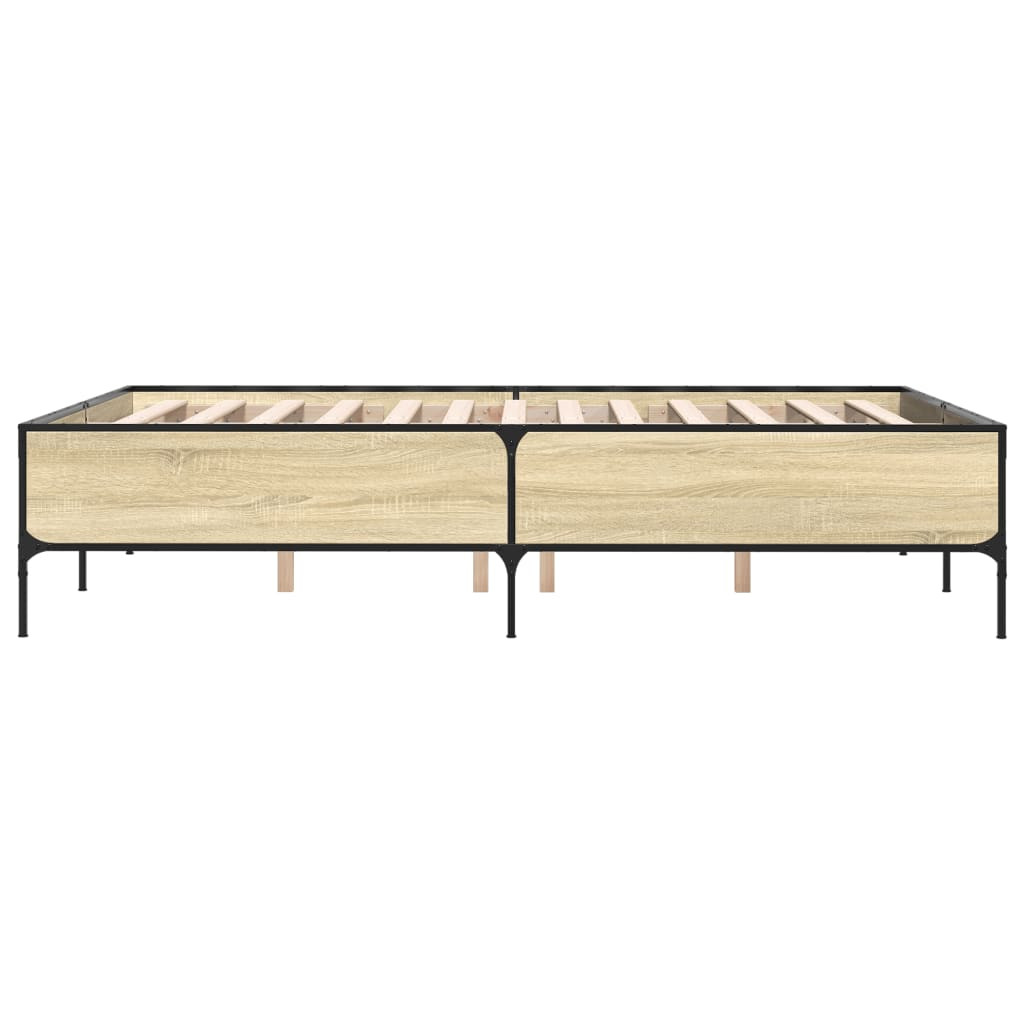 sonoma tölgyszínű szerelt fa és fém ágykeret 120 x 200 cm