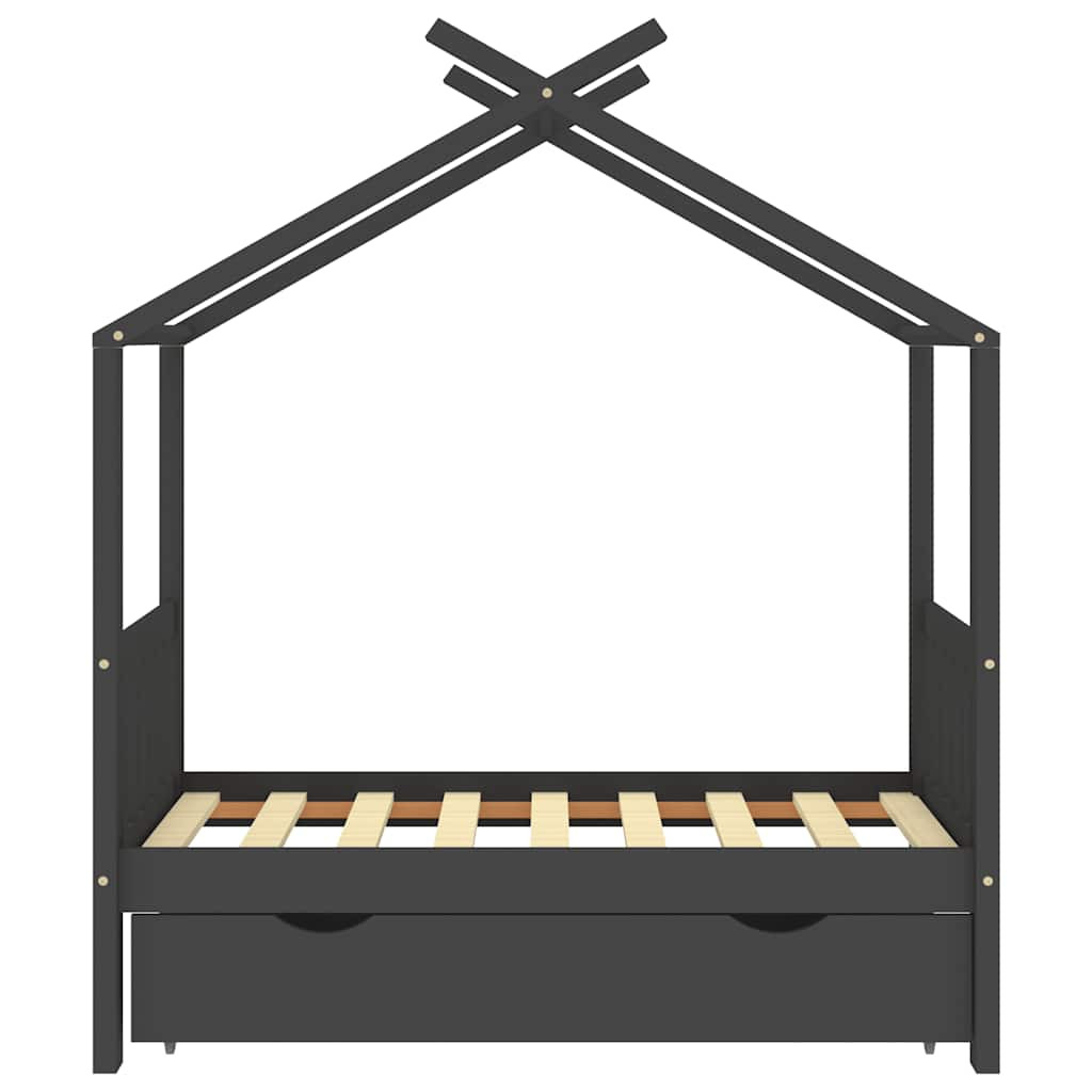 sötétszürke tömör fenyőfa gyerekágykeret fiókkal 70 x 140 cm