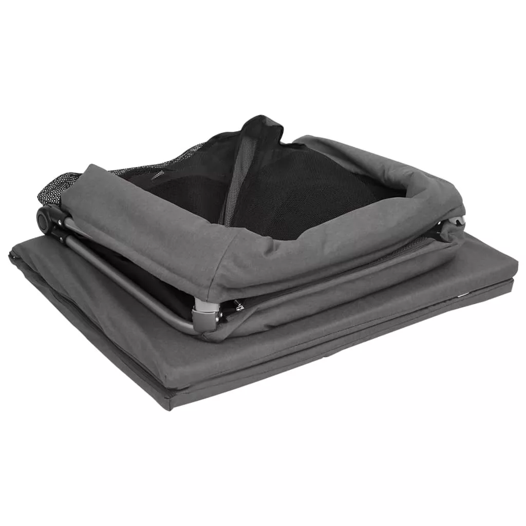 sötétszürke vászonszövet babajáróka matraccal