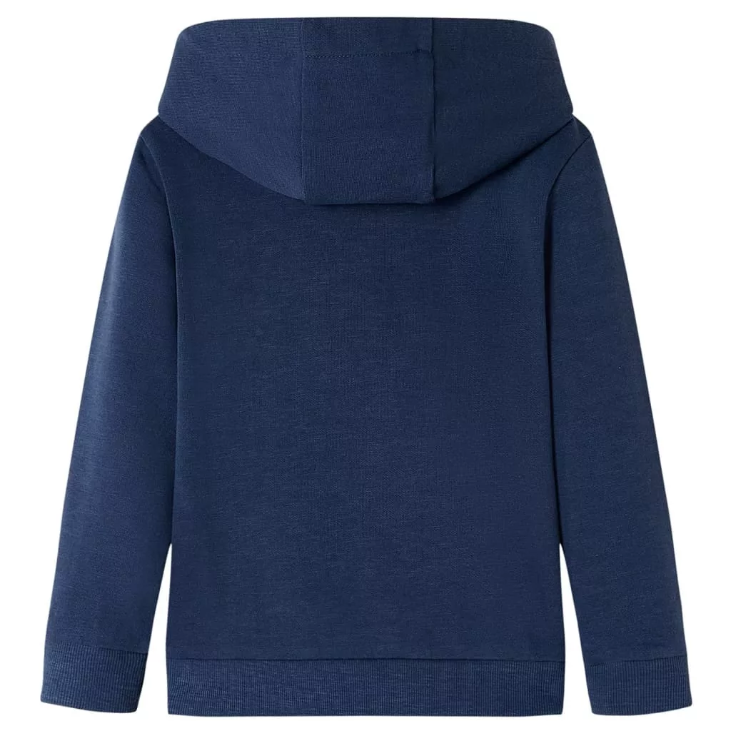 Sötétkék melange és narancs kapucnis gyerekpulóver 140
