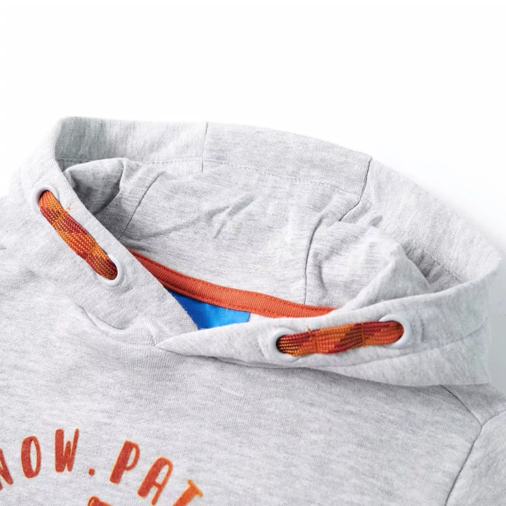 Szürke melange és narancs kapucnis gyerekpulóver 140